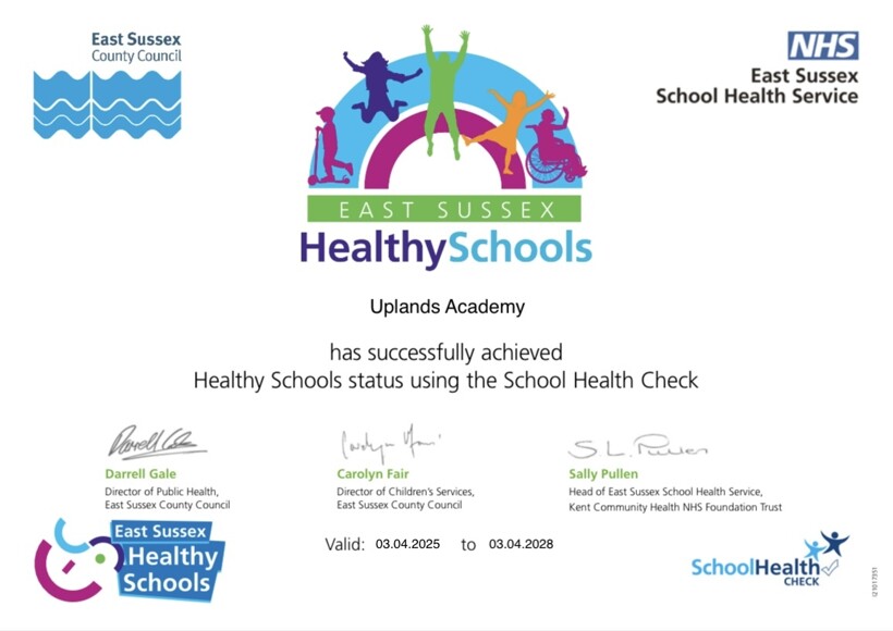 We are delighted to announce that Uplands Academy has officially achieved Healthy School Status!