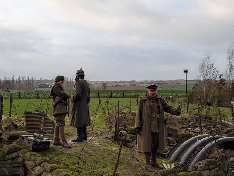 This was followed by a visit to Plugstreet to see the site of the Christmas Truce. This was informative but very wet as the heavens opened… a small taste of life on the Western Front. Then a trip to Hooge Crater for a dramatic re-enactment of the Christmas Truce followed by some welcome hot chocolate and a visit to the museum with it’s excellent collection of First World War artefacts.
