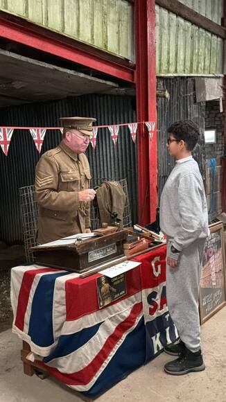Students were then treated to a fantastic workshop led by our superb re-enactors, learning about recruitment into the army in 1914 and the weapons used. Students then enjoyed a trench meal of sausage stew!