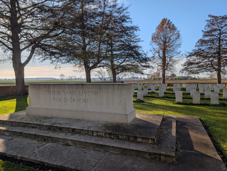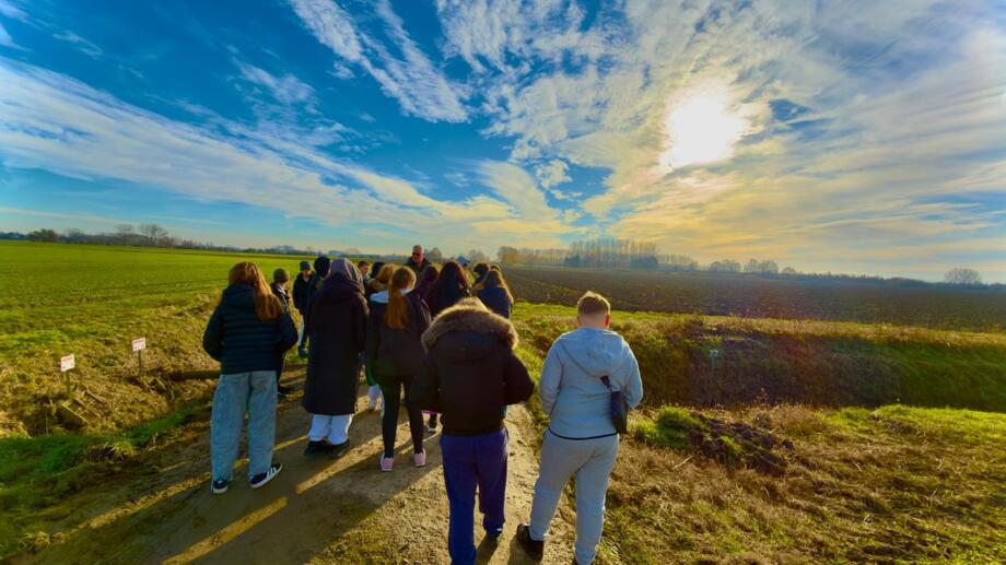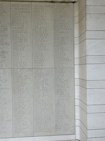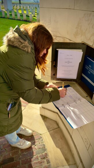 We headed straight for the site of the Battle of Aubers Ridge fought on the 9th May 1915 where twenty-five men from Wadhurst lost their lives fighting for the Royal Sussex Regiment. Students took part in an informative talk about the battle and the impacts. This was followed by a visit to Le Touret memorial where many of the Royal Sussex are remembered for their sacrifice.
